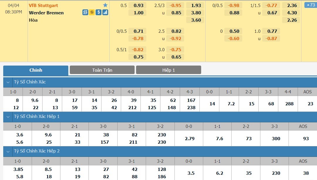 Bản thân các cầu thủ Werder Bremen không có được sự chuẩn bị tốt nhất trước khi bước vào cuộc đọ sức gặp Stuttgart. Đội khách đã phải hứng chịu liên tiếp 2 trận thua gần đây dưới tay Bayern Munich và Wolfsburg. Đánh giá về hiệu suất làm bàn, Werder Bremen chỉ có được 1.19 bàn thắng/trận, con số đó với Stuttgart chưa tới 2 bàn mỗi trận. Khả năng kèo Tài xảy ra ở trận này là không nhiều.