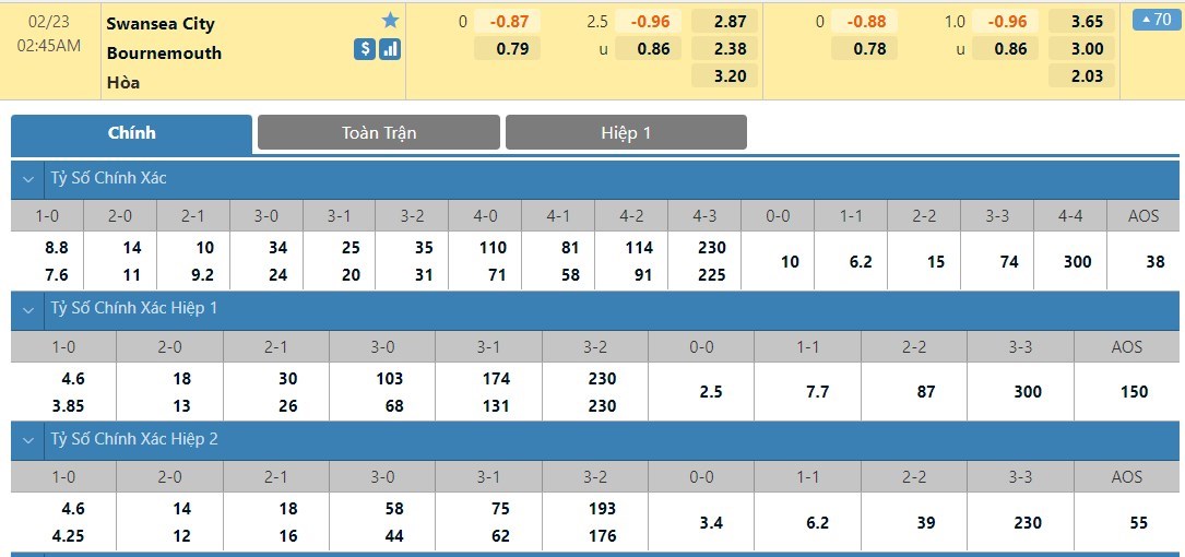 Tip kèo tỷ số hiệp 1: Swansea 1-2 Bournemouth
