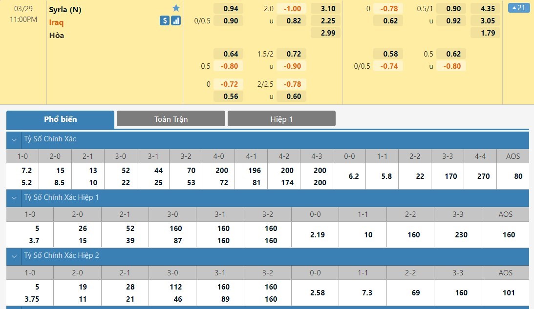 Tip kèo Châu Á hiệp 1: Chọn Syria +1/4