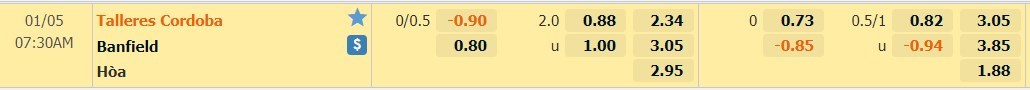 Tip kèo tỷ số hiệp 1: Talleres Cordoba 0-0 Banfield