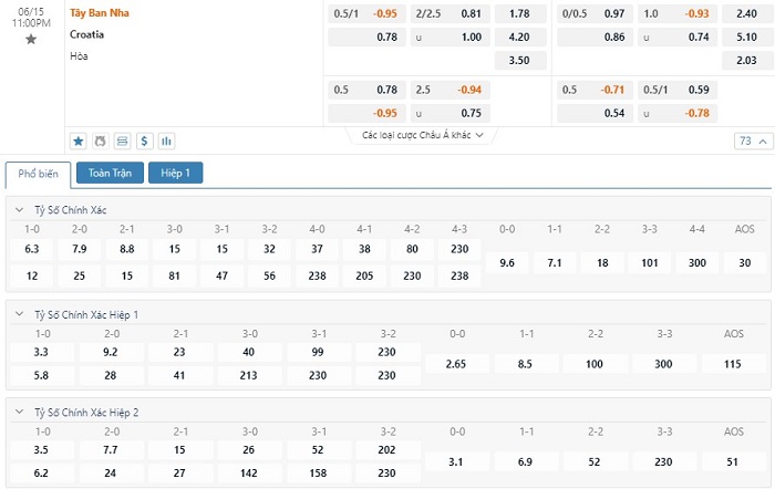 Tip kèo tỷ số hiệp 1: Tây Ban Nha 1-0 Croatia