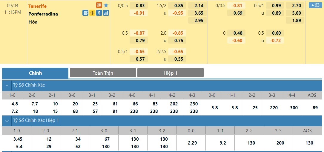 Tip kèo tỷ số hiệp 1: Tenerife 0-0 Ponferradina