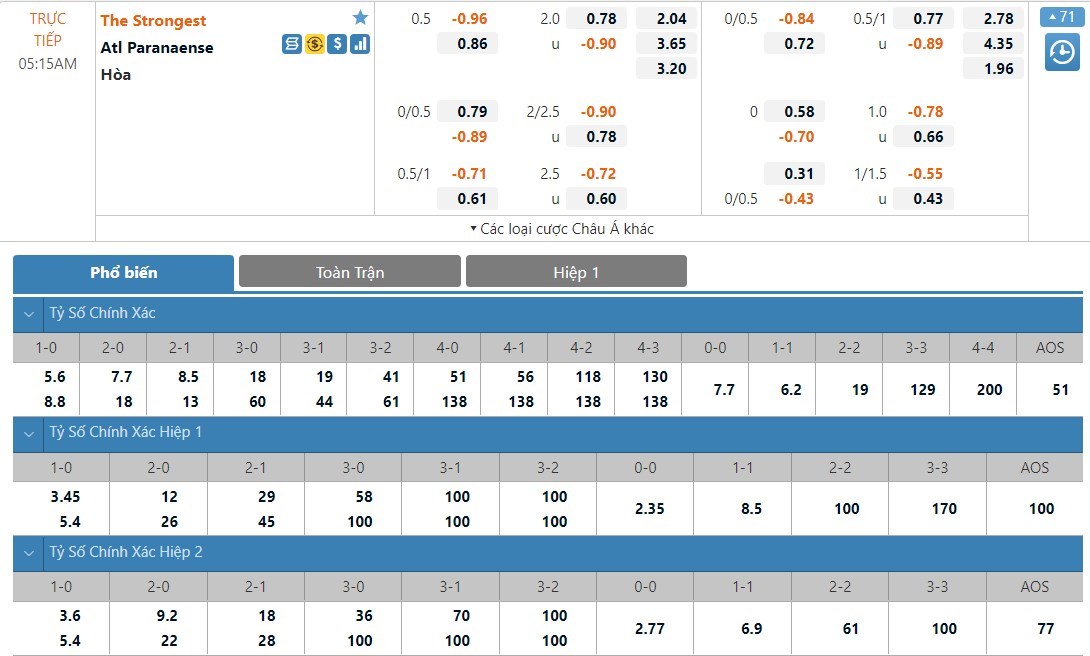 Hàng công của The Strongest đã mang về được 8 bàn thắng trong 5 trận đấu gần nhất, còn các chân sút của Atletico Paranaense thì có 6 pha lập công. Thành tích ghi bàn đó dù không thấp nhưng cũng chưa thể nói đây là mức hiệu suất tốt được. Bên cạnh đó, hàng phòng ngự của 2 đội lại thi đấu có phần hiệu quả hơn với số bàn thua phải nhận tương đối ít. Trong khi đội chủ nhà mới để lọt lưới 4 bàn thì đội khách cũng chỉ vào lưới nhặt bóng 5 lần tính trong 5 trận gần đây. Vì vậy, khả năng lớn kèo Xỉu sẽ xuất hiện ở trận này dựa trên tỷ lệ tài xỉu mà các nhà cái đã đưa ra.
