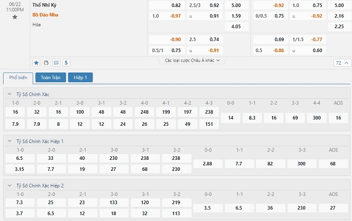 Tip kèo tỷ số hiệp 1: Thổ Nhĩ Kỳ 0-0 Bồ Đào Nha