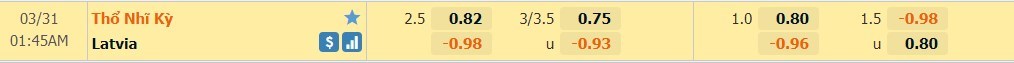 Tip kèo tỷ số hiệp 1: Thổ Nhĩ Kỳ 2-0 Latvia