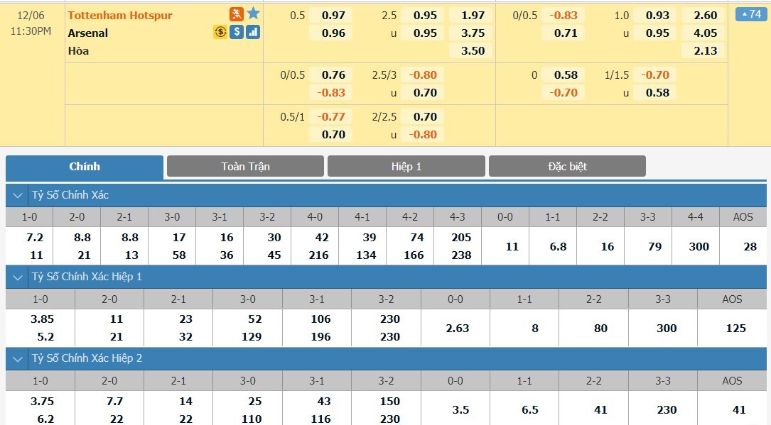 Tip kèo tỷ số full time: Tottenham 1-0 Arsenal