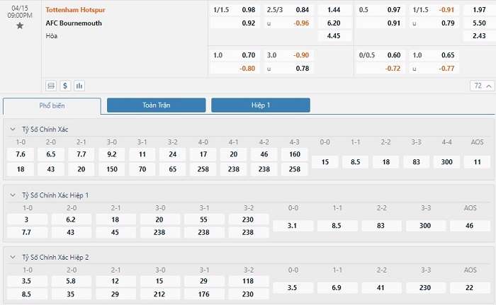 Trong 5 trận đấu gần nhất hai bên đối đầu nhau trực tiếp, Tottenham đã có 2 trận đấu mang về được cho mình ít nhất là 1 bàn thắng trong hiệp đấu đầu tiên. Còn với Bournemouth, đội bóng này chỉ có 1 lần là được điều tương tự như đội chủ nhà. Với tỷ lệ kèo hiệp 1 là -1/2 trái thì thì người chơi nên tin tưởng vào đội chủ nhà trận này.