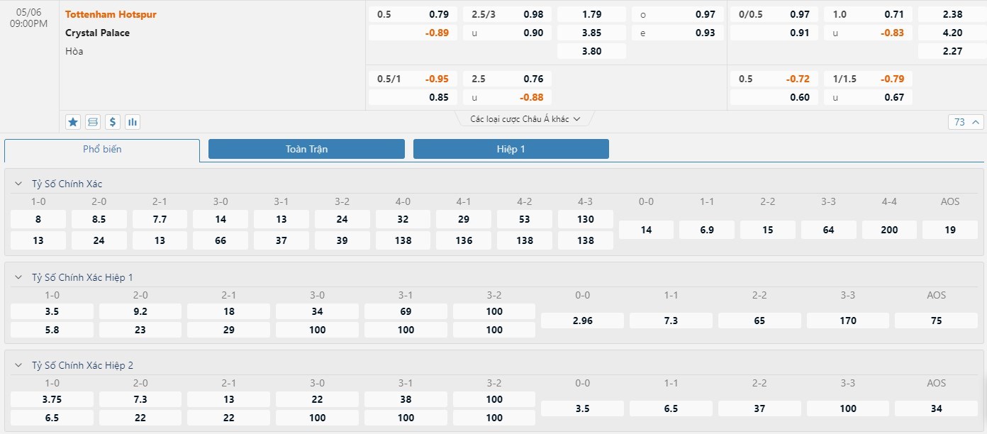 Vòng đấu vừa qua chứng kiến Crystal Palace giành thắng lợi 4-3 kịch tính trước West Ham. Với việc đang có 40 điểm trong tay, hơn nhóm cầm đèn đỏ khoảng cách 10 điểm và mùa giải chỉ còn chừng 4 lượt trận nữa là kết thúc thì có thể nói Crystal Palace đã yên tâm trụ hạng. Với tâm thế thoải mái như vậy, họ hoàn toàn có khả năng mang đến sự phiền toái cho các cầu thủ chủ nhà. Nhà cái đặt Tottenham ở thế kèo trên trận này chấp mốc tỷ lệ 1/2 trái. Theo chuyên gia 11bet nhận định thì cửa thắng của đội chủ nhà là không mấy khả quan. 4 màn đụng độ gần nhất giữa Tottenham và Crystal Palace đều có tối thiểu 3 bàn thắng được ghi mỗi trận.