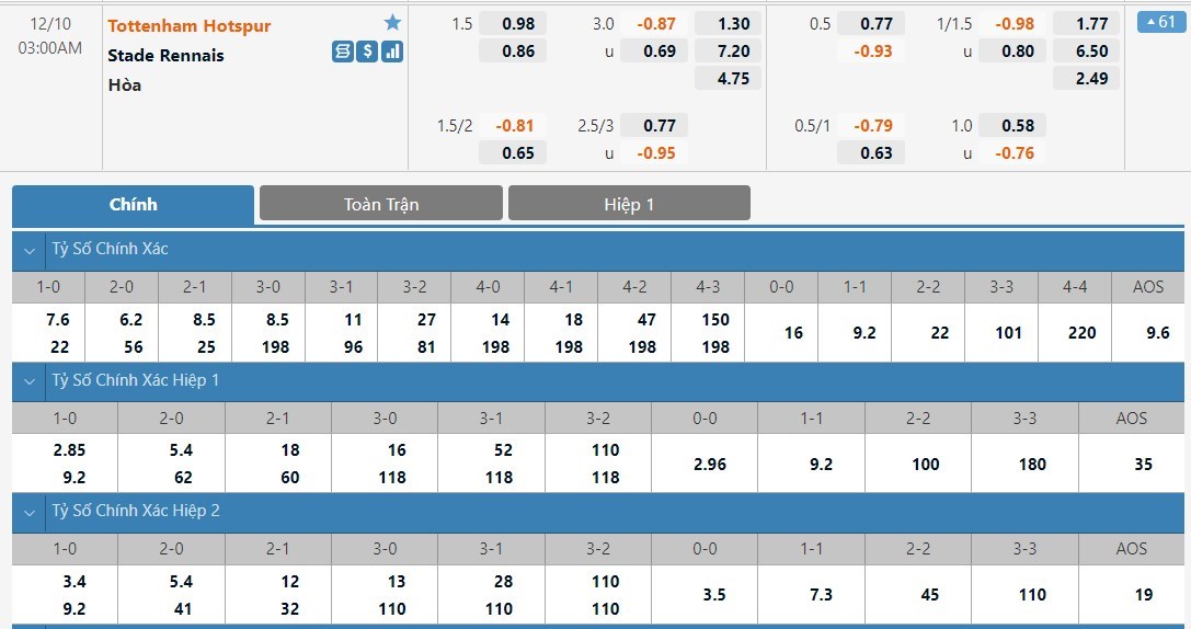 Tip kèo tỷ số full time: Tottenham 2-2 Rennes