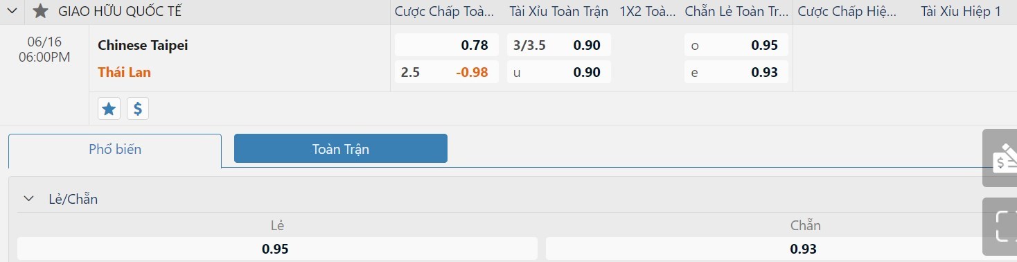Tip bóng đá Trung Hoa Đài Bắc vs Thái Lan, hôm nay 16/06/2023