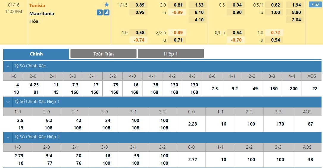 Tip kèo tỷ số hiệp 1: Tunisia 1-0 Mauritania