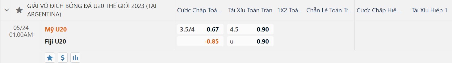 Tip kèo tỷ số hiệp 1: U20 Mỹ 1-0 U20 Fiji