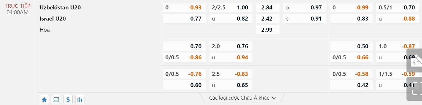Tip kèo tỷ số hiệp 1: U20 Uzbekistan 0-0 U20 Israel