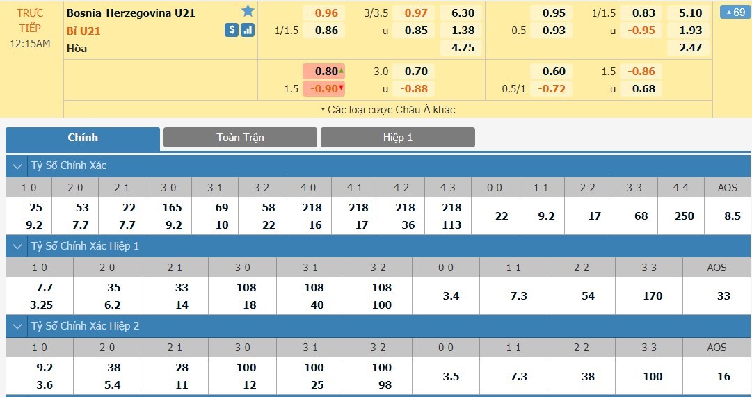 Tip kèo tỷ số hiệp 1: U21 Bosnia Herzegovina 0-2 U21 Bỉ