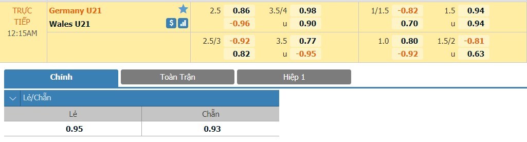 Tip kèo tỷ số hiệp 1: U21 Đức 2-0 U21 Xứ Wales