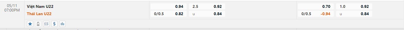 Trong 5 trận đấu gần nhất của mình, U22 Việt Nam đã có 4 trận đấu mang về được cho mình ít nhất là 1 bàn thắng trong hiệp đấu đầu tiên. Còn với U22 Thái Lan, đội bóng này đã có 2 lần làm được điều này trong 45 phút đầu tiên. Các nhà đầu tư nên tin tưởng vào kết quả hòa ở trong hiệp đấu đầu tiên này.