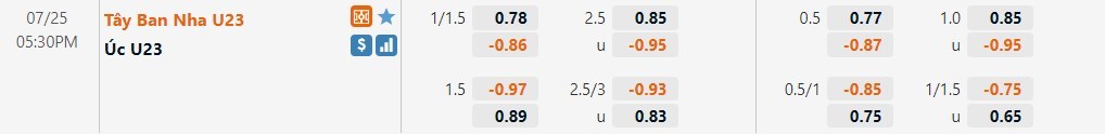 Tip kèo tỷ số hiệp 1: U23 Australia 0-0 U23 Tây Ban Nha