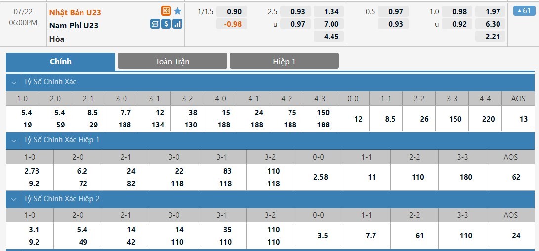 Tip kèo tỷ số hiệp 1: U23 Nhật Bản 2-0 U23 Nam Phi