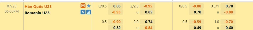 Tip kèo tỷ số hiệp 1: U23 Romania 0-0 U23 Hàn Quốc