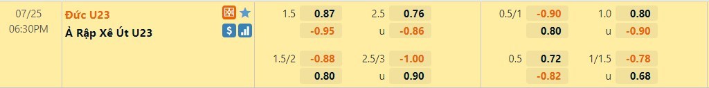 Tip kèo tỷ số hiệp 1: U23 Saudi Arabia 0-2 U23 Đức