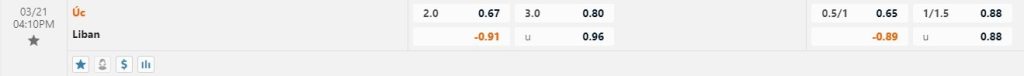Tip kèo tỷ số hiệp 1: Úc 1-0 Liban