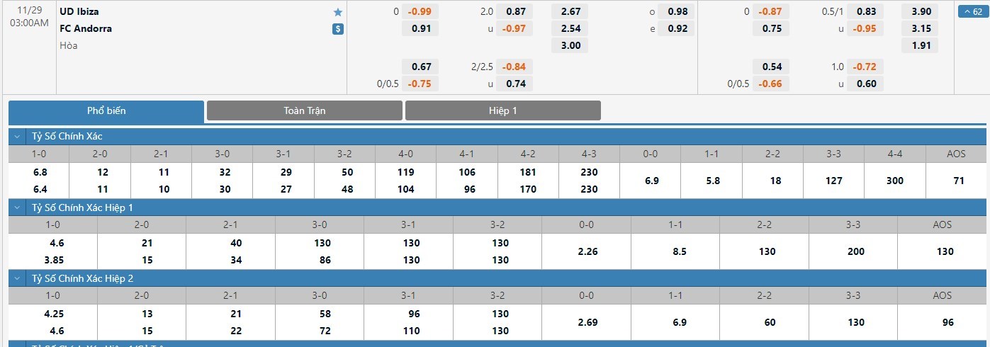 Trong 5 trận đấu gần nhất của mình, UD Ibiza chỉ có 1 trận đấu mang về được cho mình ít nhất là 1 bàn thắng trong hiệp đấu đầu tiên. Còn với Andorra, đội bóng này đã có 4 lần làm được điều này trong 45 phút đầu tiên. Với kèo hiệp 1 thì người chơi nên tin tưởng vào đội khách trận này.