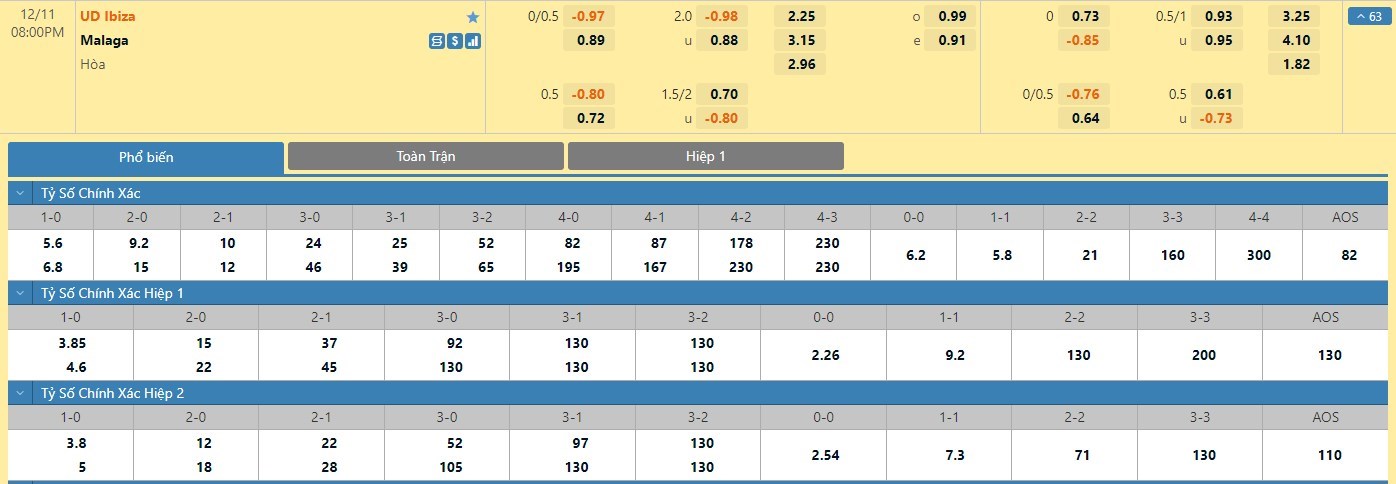 Trong 5 trận đấu gần nhất của mình, UD Ibiza đã có 2 trận đấu mang về được cho mình ít nhất là 1 bàn thắng trong hiệp đấu đầu tiên. Còn với Malaga, đội bóng này chỉ có 1 lần làm được điều này trong 45 phút đầu tiên. Với kèo hiệp 1 thì người chơi nên tin tưởng vào kịch bản hai đội sẽ cầm hòa nhau trong 45 phút đầu trận này.