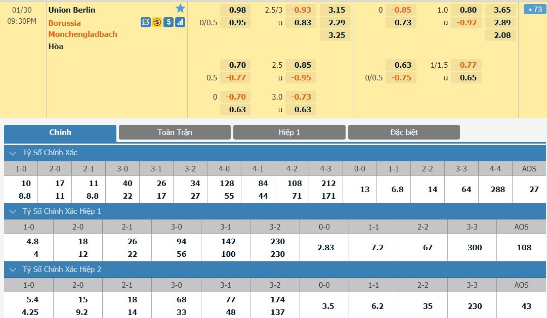 Ở cuộc đọ sức giữa hai đội tại giai đoạn lượt đi mùa bóng năm nay, Monchengladbach đã có 1 điểm trên sân nhà khi để cho Union Berlin cầm hòa 1-1. Không phải ngẫu nhiên mà nhà cái lại dành cho Monchengladbach vị thế chiếu trên chấp ngược chủ nhà mốc tỷ lệ -1/4 bàn kèo đấu này. Cả Union Berlin và Monchengladbach đều là những đội có thành tích ghi bàn tốt nhưng họ cũng không thật sự chắc chắn trong khoản phòng ngự. Thế nên chuyên gia nhận định khả năng cao hai đội sẽ tạo nên 1 trận cầu nhiều bàn thắng.