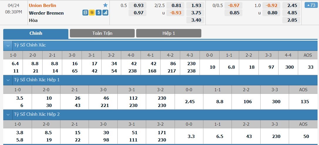 Nhìn chung cả chủ nhà lẫn đội khách đều đang ghi bàn không quá tệ ở mùa giải năm nay. Cụ thể sau 29 lần ra sân Union Berlin mang về tới 44 bàn thắng, trong khi đó thành tích này bên phía Werder Bremen cũng là 33 bàn. Hơn nữa tỷ lệ tài xỉu mà nhà cái đưa ra chỉ là 2.25 con số không quá cao, do đó cửa tài nên là lựa chọn ưu tiên của người chơi.