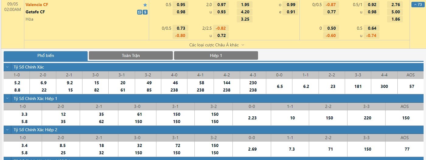 Trong 5 trận đấu gần nhất hai đội đụng độ nhau, Valencia đã có 2 trận đấu mang về được cho mình ít nhất là 1 bàn thắng trong hiệp đấu đầu tiên trong khi Getafe chỉ có tới 1 lần làm được điều này. Với tỷ lệ kèo hiệp 1 ở trận đấu này được đưa ra là -1/4 trái thì người chơi nên tin tưởng vào đội chủ nhà.