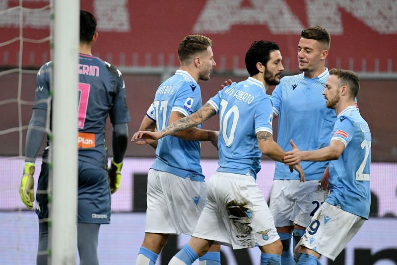 Lazio: Strakosha, Hysaj, Luiz Felipe, Acerbi, Marusic, Milinkovic-Savic, Cataldi, Basic, Pedro, Anderson, Zaccagni.
