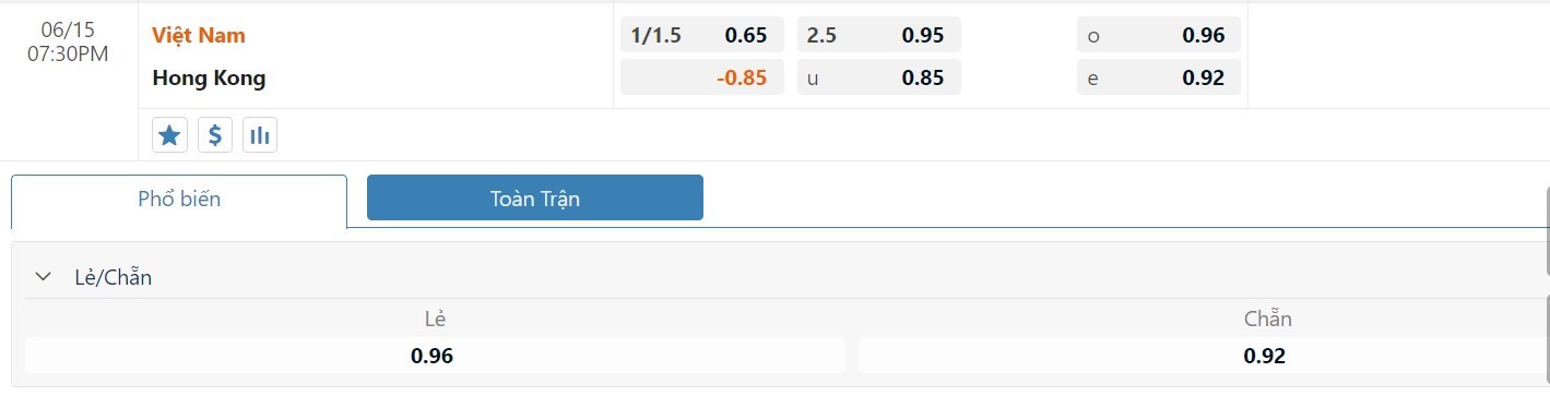Chạm trán với Việt Nam đương nhiên là sự khó khăn vô cùng lớn đối với đoàn quân của HLV Szeto Man Chun, nhất là trong bối cảnh còn phải hành quân xa nhà. Thật khó đẻ với màn trình diễn hiện tại, Hồng Kông có thể tạo nên điều gì đó bất ngờ. Trong 5 trận đấu gần nhất của mình, Việt Nam đã có 3 trận đấu mang về được cho mình ít nhất là 1 bàn thắng trong hiệp đấu đầu tiên. Còn với Hồng Kông, đội bóng này chỉ có 2 lần làm được điều này trong 45 phút đầu tiên. Với tỷ lệ kèo hiệp 1 là -1/2 trái thì các nhà đầu tư nên tin tưởng vào Việt Nam ở trong hiệp đấu đầu tiên này.