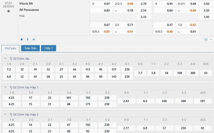 Tip kèo tỷ số hiệp 1: Vitoria 0-0 Athletico-PR