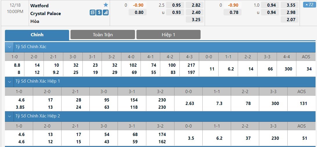 Không chỉ ngang ngửa về phong độ mà thành tích đối đầu của đôi bên cũng không có quá nhiều chênh lệch. Cụ thể ở 5 lần gần nhất 2 đội gặp nhau thì mỗi bên đều mang về 2 chiến thắng cùng với đó là 1 trận hòa. Điều này càng khiến chúng ta tin vào khả năng Watford và Crystal Palace chia điểm ở trận cầu tới. Bàn thắng luôn là thứ xa xỉ trong những cuộc đối đầu giữa Watford và Crystal Palace. Theo như kết quả thống kê trong 4 lần gần nhất 2 đội gặp nhau thì chỉ có đúng 1 trận xuất hiện nhiều hơn 2 pha lập công. Vì vậy đối với kèo tài xỉu 2 1/2 trái thì xỉu vẫn sẽ là lựa chọn mang tới sự yên tâm cho người chơi.