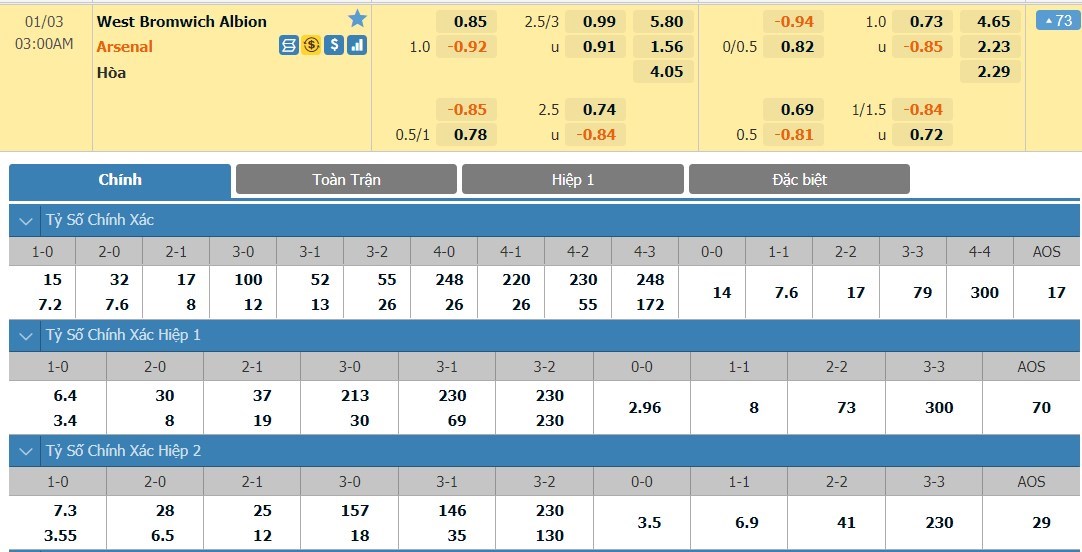 Những tín hiệu tích cực đang trở lại với Arsenal khi họ giành liên tiếp 2 thắng lợi lần lượt trước Chelsea và Brighton. Đó cũng là 2 trận đấu Arsenal thắng kèo châu Á. So sánh trên nhiều khía cạnh, đương nhiên West Bromwich không phải đối thủ xứng tầm của Arsenal. Tính trong phạm vi 10 cuộc đụng độ gần nhất giữa đôi bên, Arsenal giành được 6 chiến thắng. Đánh giá về khả năng xuất hiện bàn thắng, chuyên gia 11bet cho rằng cặp đấu này sẽ có thể vượt qua mốc tỷ lệ 2 3/4 bàn. Cả 3 trận sân nhà gần nhất của West Bromwich đều có tối thiểu 3 bàn thắng được ghi.