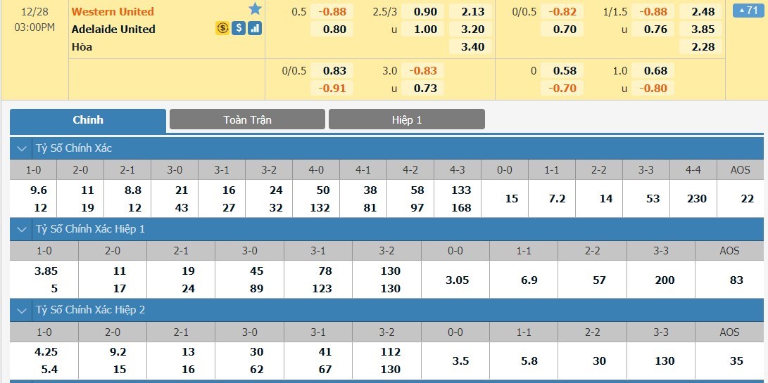 Tip kèo tỷ số hiệp 1: Western United 0-0 Adelaide United