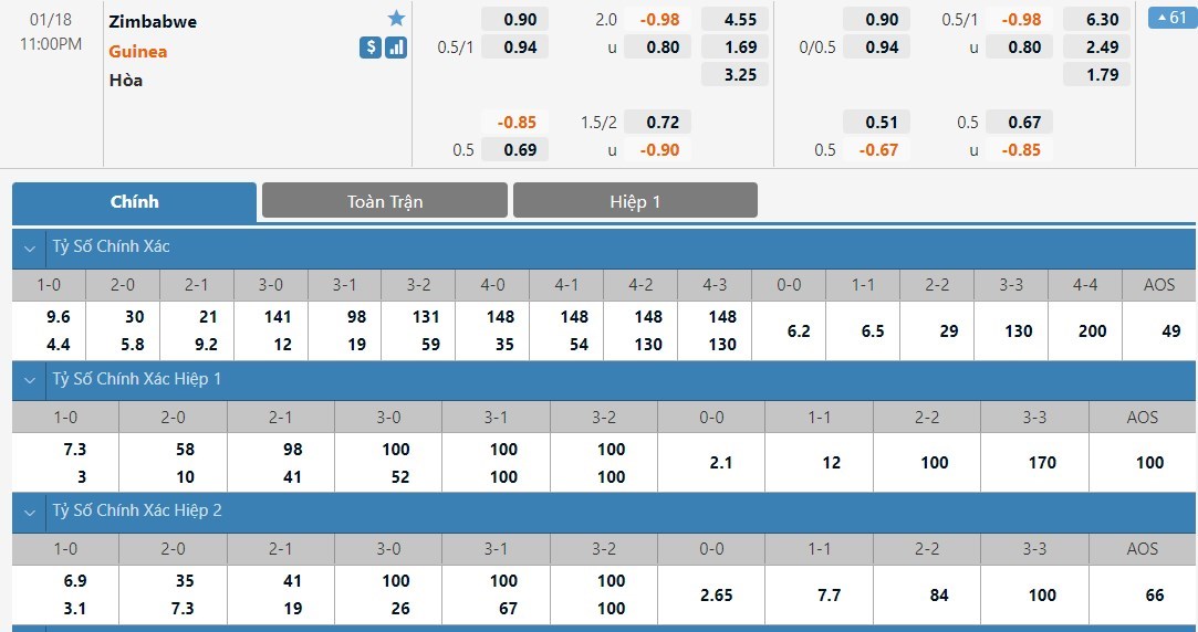 Tip kèo tỷ số hiệp 1: Zimbabwe 0-0 Guinea